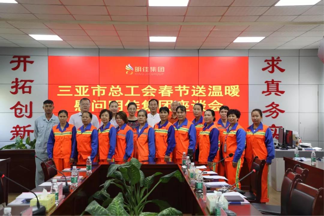 最后,慰問團(tuán)一行來到三亞明佳園林環(huán)衛(wèi)集團(tuán)有限公司召開座談會。會上,慰問團(tuán)展開討論了高齡、高風(fēng)險(xiǎn)環(huán)衛(wèi)從業(yè)人員的權(quán)益保障問題,并詳細(xì)了解了企業(yè)職工在工作、生活中存在的問題,并認(rèn)真聽取他們的訴求和建議。